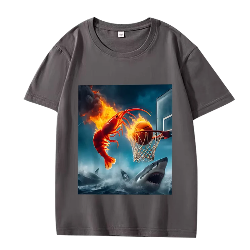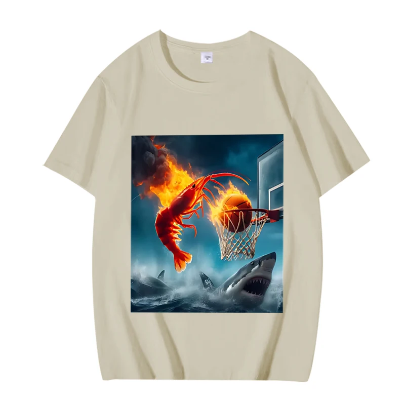 Shrimp Dunking on Shark Graphic tee Meme T Shirt 100% Cotton short sleeve Summer Unisex top