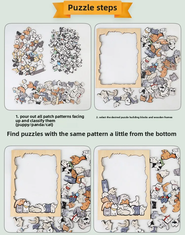 Wood Special-shaped Animal Puzzle Puppy Cat Puzzle Building Block Children's Creative Toy Gift